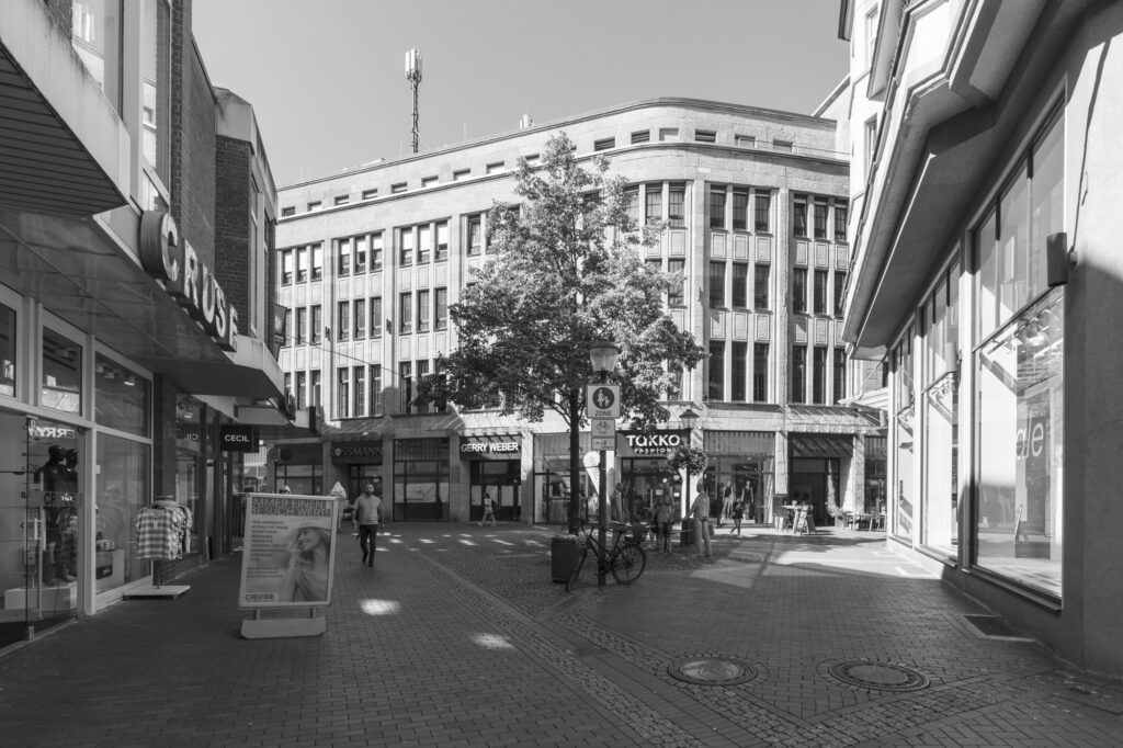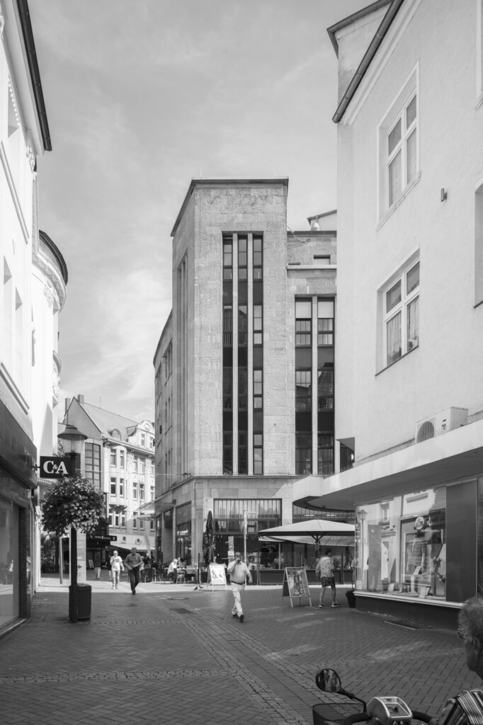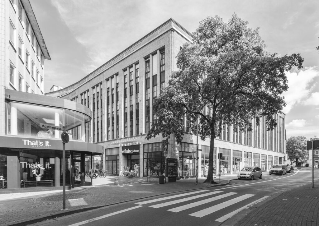 Linden-Karree, Gelsenkirchen-Buer früher ein Kaufhaus aus der Jahrhuntwende um 1900. heute Mehrzweckgebäude (Pensionistenheim, Bibliothek, Fitnesscenter, Geshäfte, Gastronomie
